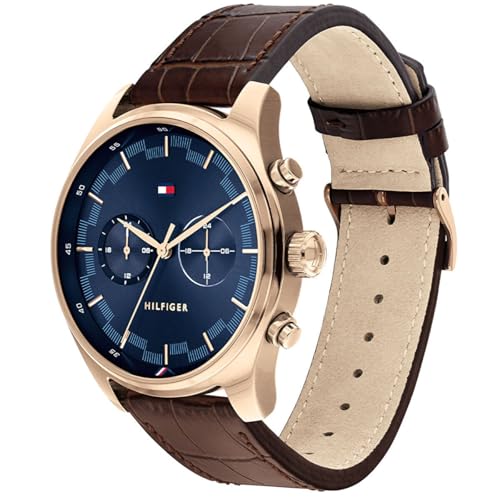 Tommy Hilfiger - ساعة كوارتز انالوج بعقارب وسوار من الجلد للرجال تومي هيلفيجر لون ازرق 1710423 أزرق