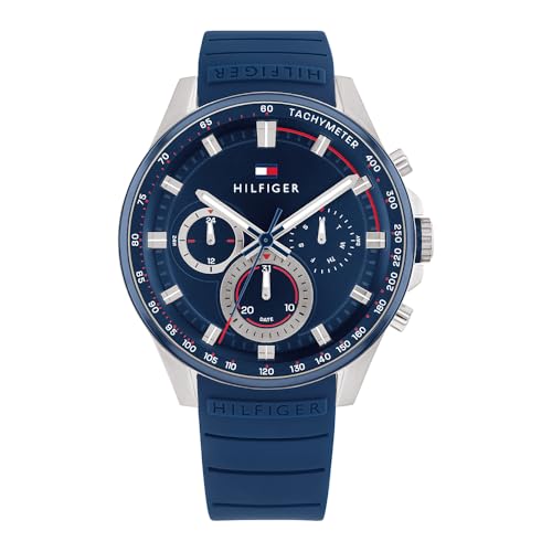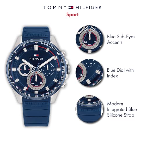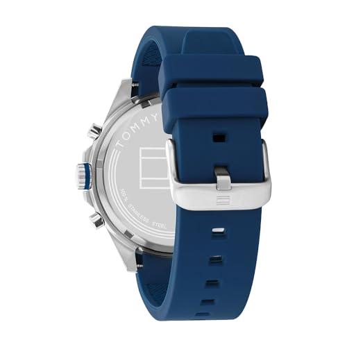 Tommy Hilfiger - تومي هيليفيغر ساعة كوارتز انالوج بعقارب وسوار سيليكون للرجال 1791970، بمينا أزرق