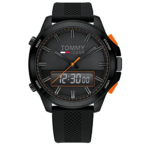 Tommy Hilfiger - تومي هيليفيغر ساعة بمينا اسود وسوار سيليكون للرجال - 1791763 رقمي تناظري