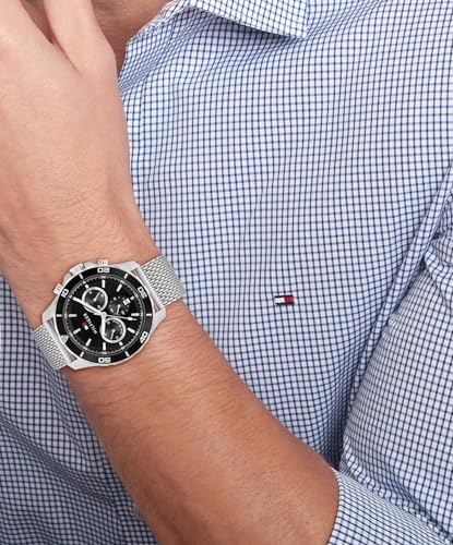 Tommy Hilfiger - تومي هيليفيغر ساعة للرجال بمينا اسود وسوار من الستانلس ستيل - 1792092