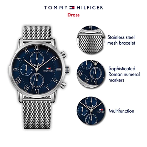 Tommy Hilfiger - ساعة بمينا ازرق وسوار ستانلس ستيل للرجال من تومي هيلفيجر- 1791398، تناظري