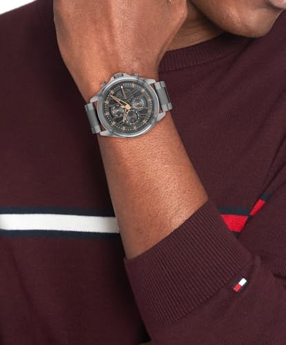 Tommy Hilfiger - تومي هيليفيغر ساعة للرجال بمينا رمادي داكن وسوار ستيل رمادي مطلي ايونيا - 1710657
