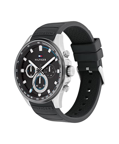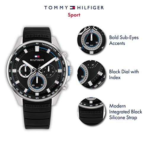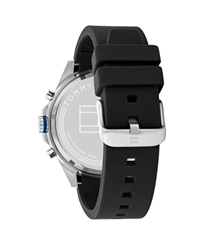 Tommy Hilfiger - ساعة كوارتز ستانلس ستيل بسوار سيليكون للرجال من تومي هيلفيجر - 21 موديل: 1791971 أسود