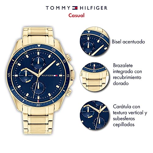 Tommy Hilfiger - تومي هيليفيغر ساعة كوارتز متعددة الوظائف للرجال - سوار من الستانلس ستيل - كاجوال - هدية - 44 ملم بمينا أزرق