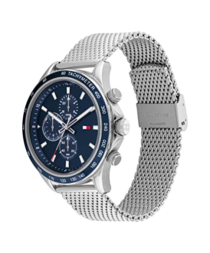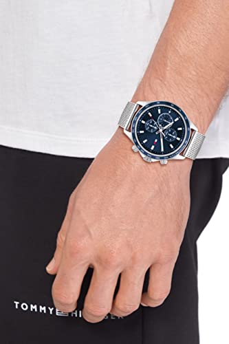 Tommy Hilfiger - تومي هيليفيغر ساعة للرجال بهيكل من الستانلس ستيل وسوار شبكي اللون: فضي الموديل: 1792018 تناظري