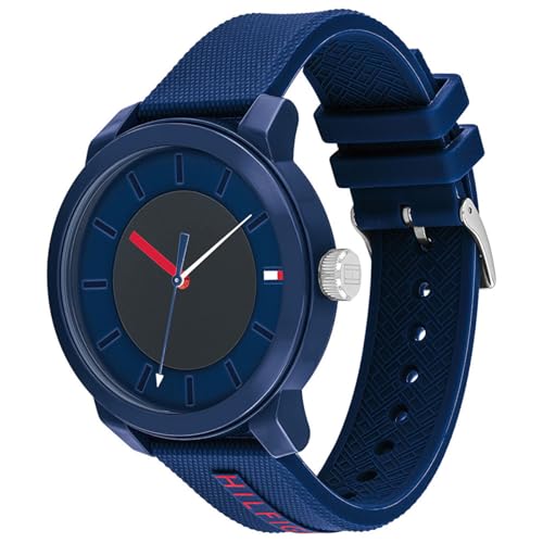 Tommy Hilfiger - ساعة انالوج بعقارب وسوار سيليكون للرجال من تومي هيلفيجر - كحلي