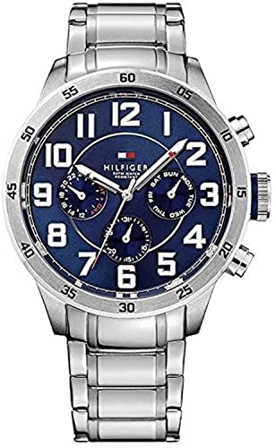 Tommy Hilfiger - حافظة صلبة للرجال من تومي هيلفيغر ترينت 1791053، انالوج بعقارب، بمينا أزرق، بسوار فضة