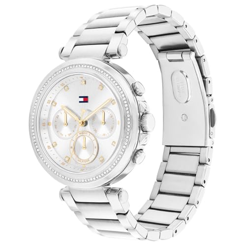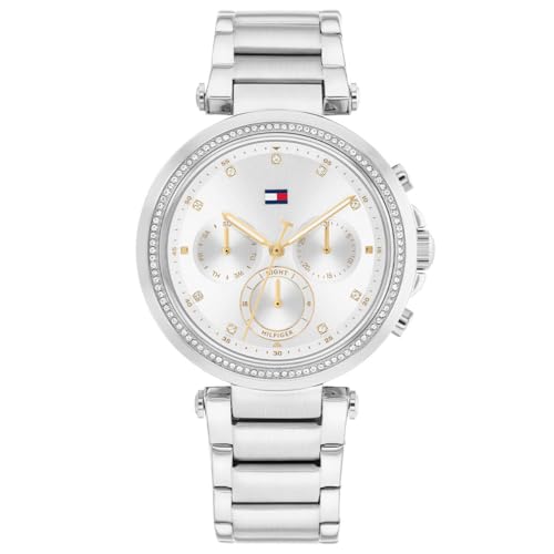 Tommy Hilfiger - تومي هيليفيغر ساعة للنساء بمينا فضي وابيض وسوار من الستانلس ستيل - 1782701