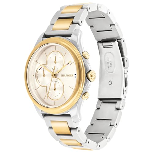 Tommy Hilfiger - تومي هيليفيغر ساعة كوارتز بعرض انالوج وسوار من الستانلس ستيل للنساء 1782264، بمينا ذهب