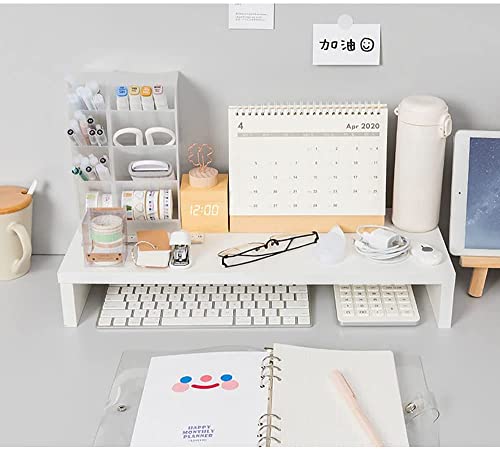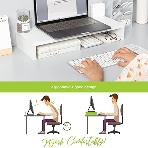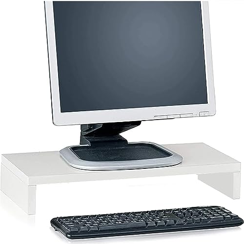 TOMVAES - تومفايس حامل شاشة، منظم مكتب للابتوب والكمبيوتر، حامل شاشة خشبي للطابعة والكمبيوتر، حامل لابتوب موفر للمساحة للاستخدام المنزلي والمكتب، ابيض