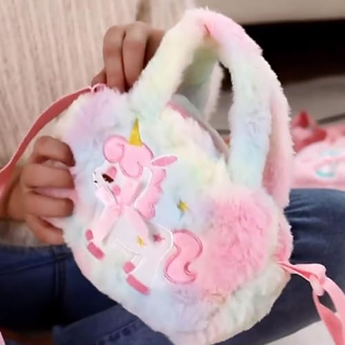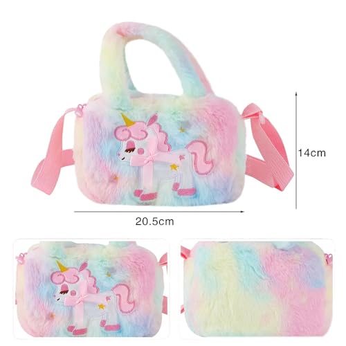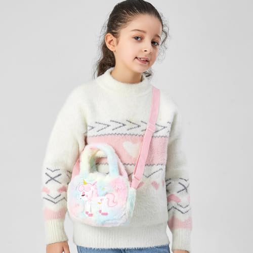 TOMVAES - تومفايس شنطة كروس بتصميم يونيكورن، شنط ماسنجر لطيفة للبنات الصغيرات، شنطة كتف صغيرة بتصميم كرتوني عصري، شنطة يد توت مخملية للتخزين