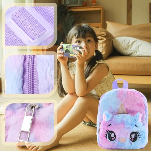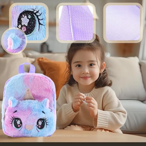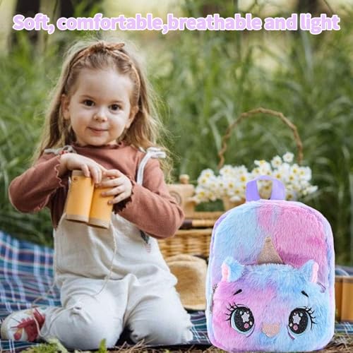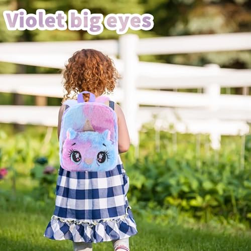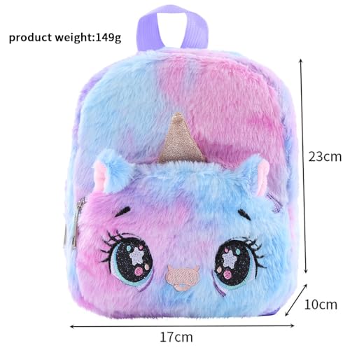TOMVAES - شنطة ظهر مخملية جميلة للاطفال، شنطة ظهر منفوشة للبنات المراهقات والسفر والمنزل والمدرسة والتخييم بتصميم شخصيات كرتونية، 23 × 17 × 10 سم