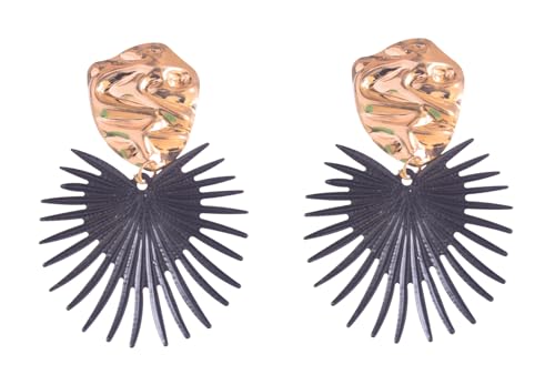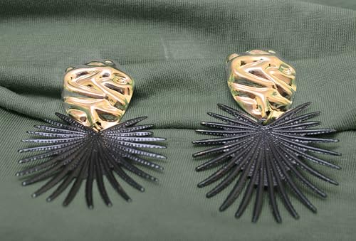 Generic - أقراط أذن بريمة استانلس ستيل بتصميم لطيف بدلاية انيقة للبنات ، ذهبي واسود TON-A-1069