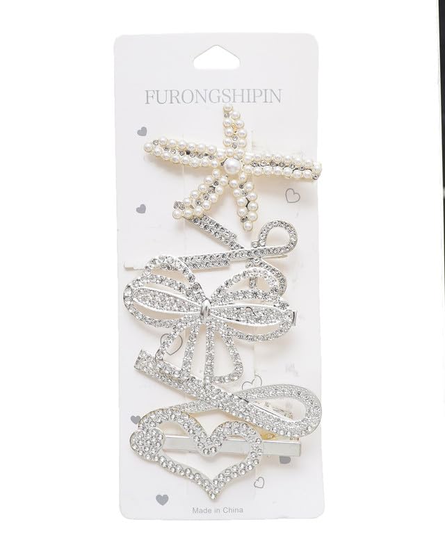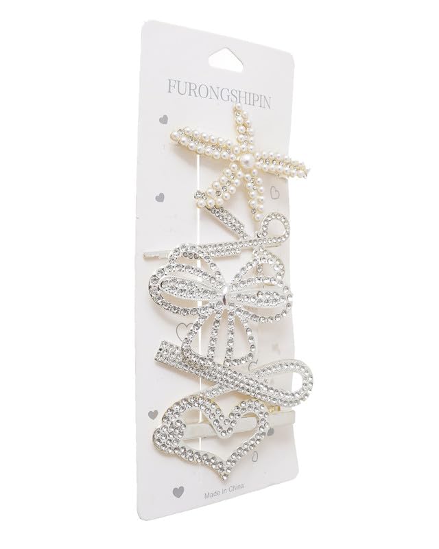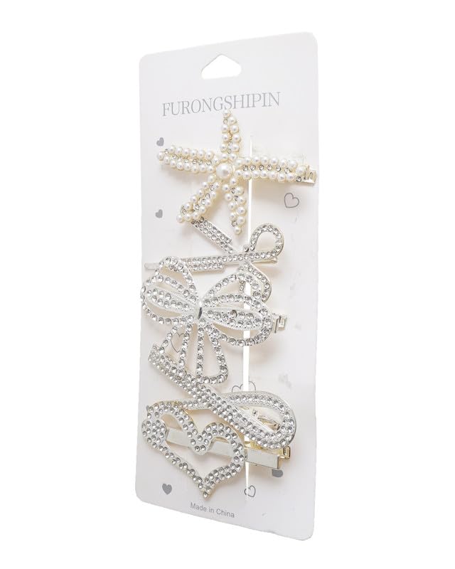 Generic - طقم توك مشبك معدن بها فصوص لامعة للشعر 5 قطع للبنات ، فضي TON-A-1535