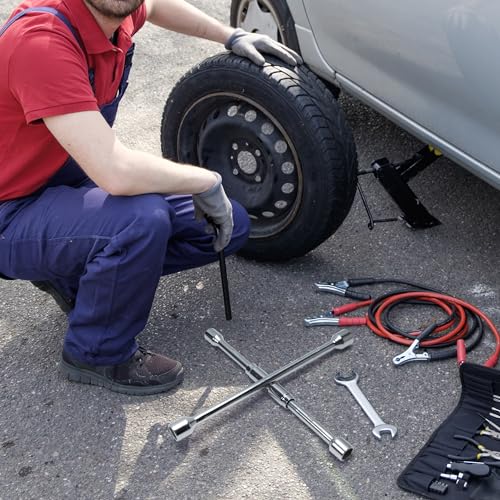 TONDA - مفتاح عدة رباعي الاتجاهات من توندا، مفتاح ربط عجلات السيارات قابل للطي، مفتاح صمولة عجلة حديدي شامل متعدد المقاسات من الصلب الكربوني المطلي بالكروم