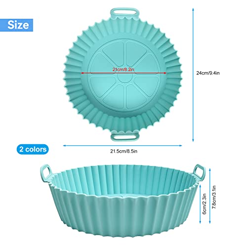 Tongboke - حلة سيليكون للقلاية الهوائية بسعة كبيرة جدا 22 سم، بطانة سيليكون مقاومة للالتصاق وقابلة لإعادة الاستخدام، سلة قلاية هوائية للفرن وصواني خبز الكيك في الميكروويف، اكسسوارات للقلاية الهوائية، قطعتان