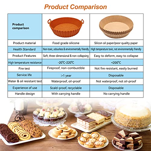 - مادة مقاومة للتآكل: إكسسوارات القلاية الهوائية مصنوعة من مادة سيليكون سميكة عالية الجودة، ومقاومة للخدش والتآكل والتمزق والاتساخ. مناسبة لجميع أنواع أواني الطهي مثل أفران الميكروويف وأجهزة البخار والأفران.