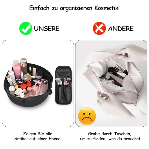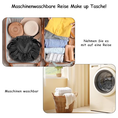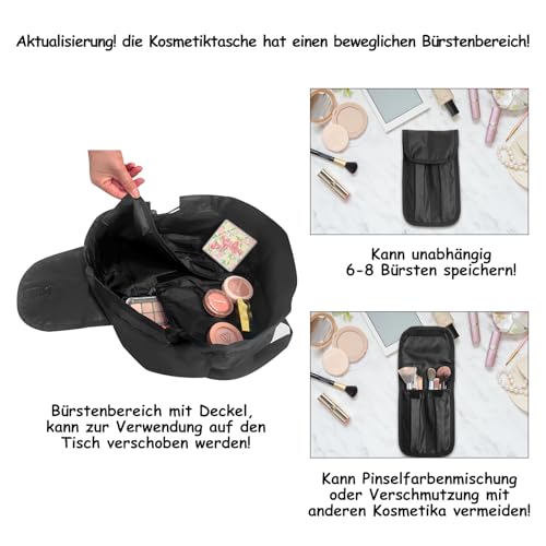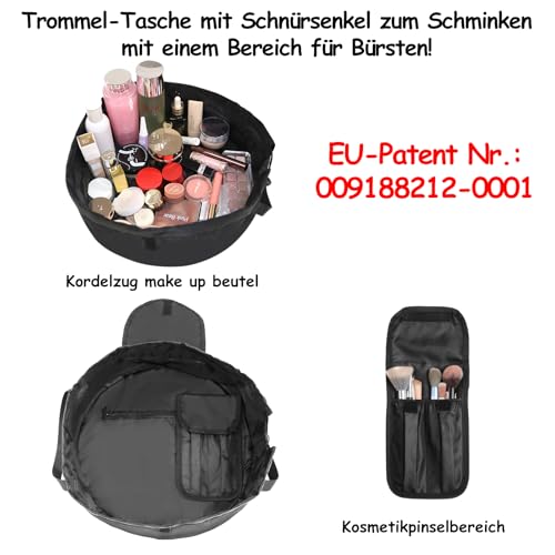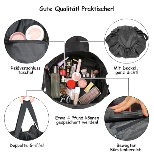 SUMBABO - حقيبة مستحضرات تجميل برباط للنساء والفتيات من تونز - اكسسوارات السفر للنساء، حقيبة منظم مكياج للسفر للحمام مع حقيبة فرش (اسود)، حقيبة مستحضرات تجميل برباط سحب