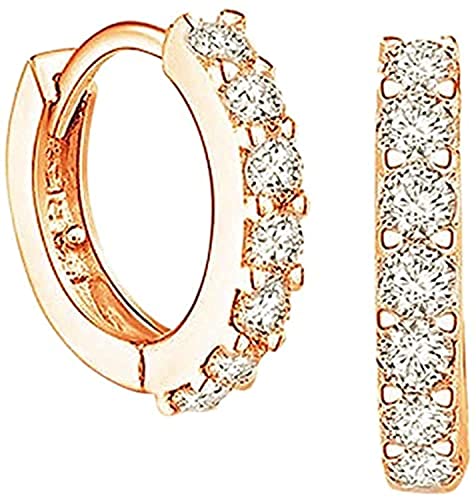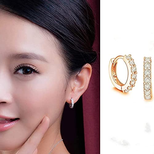 Generic - حلق صغير بريمة انيق للغاية لا يسبب اي حساسية بتصميم دائري مائل لشحمة الاذن مرصع بزركونيا مكعب ايه للنساء ذهبي - زوج واحد مادة صناعية