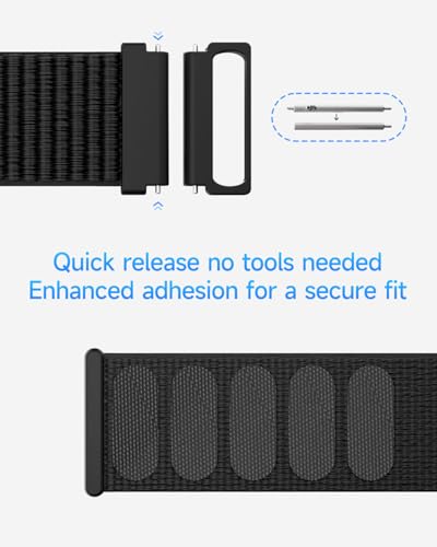 TOOBUR - سوار ساعة للجنسين نايلون سريع الفك، حلقة سولو قابلة للتعديل، متوافق مع الساعات بعرض عروة 22 ملم، موديل عالمي، من توبر، أسود، 22 ملم