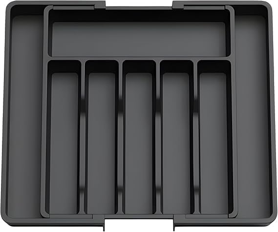 Generic - منظم ادراج للادوات - صينية ادوات مطبخ قابلة للتوسيع، حامل قابل للتعديل وادوات المائدة، تخزين بلاستيكي صغير الحجم للشوك والملاعق والسكاكين (اسود)