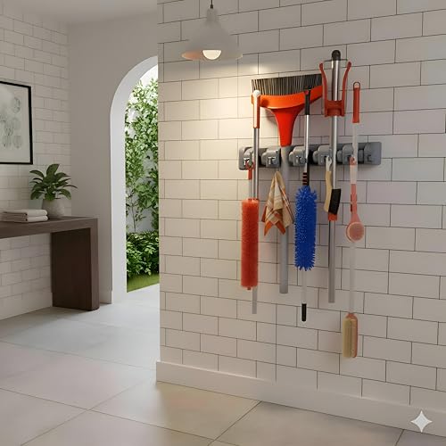 - هذا التصميم المكون من 5 خطافات يستوعب المكانس والمماسح والفرش وأكثر من ذلك، مما يضمن أن كل أداة تنظيف لها مكانها المحدد دون اكتظاظ.