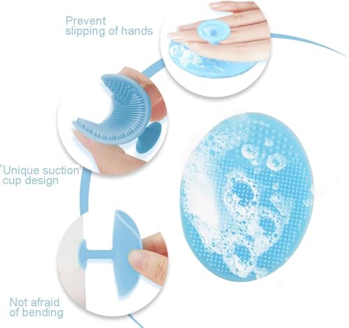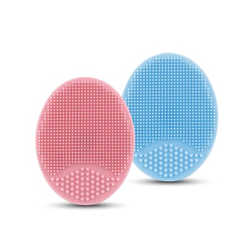 ToolHouse - فرشاة سيليكون للاطفال من تول هاوس، فرشاة سيليكون للوجه بشعيرات ناعمة ومهدئ للبشرة، فرشاة لطيفة للاطفال حديثي الولادة والاطفال الصغار، مجموعة العناية بالطفل الاساسية (ازرق + بينك)