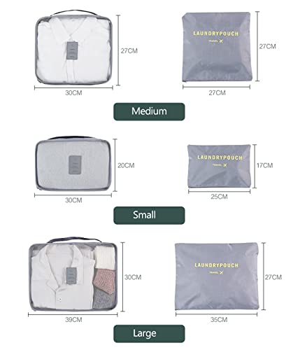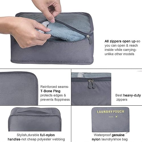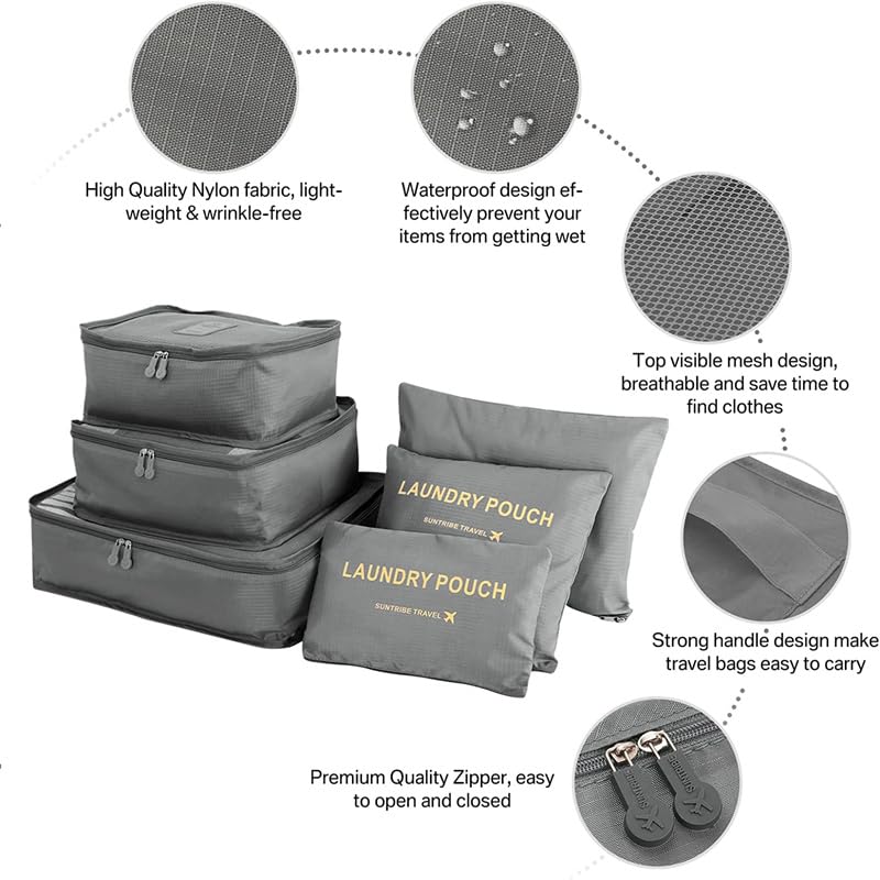 ToolHouse - مجموعة من 6 قطع منظم امتعة السفر تول هاوس منظمات مكعبة التعبئة ملابس متعدد الوظائف حقائب تخزين حقيبة داخلية احذية مضغوطة نايلون رمادي