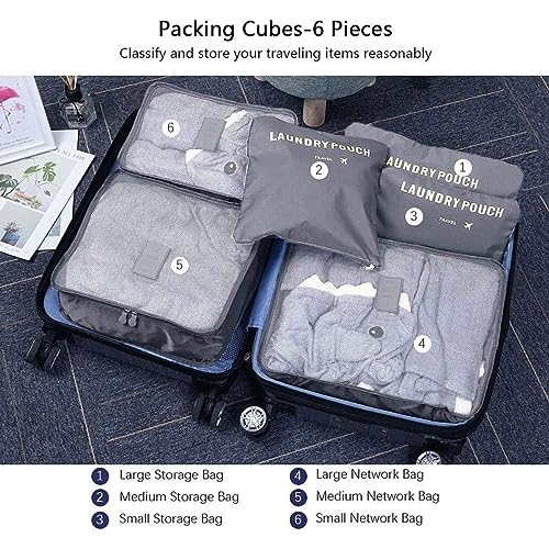 - مجموعة ذات سعة كبيرة من 6 قطع: أحجام مختلفة من مجموعات حقائب السفر الأساسية يمكنها تخزين الملابس المصنفة والملابس المتسخة وحمالات الصدر والملابس الداخلية والأحذية ومستحضرات التجميل والمناشف وأدوات النظافة والإكسسوارات الإلكترونية. إنه رفيق سفر رائع.