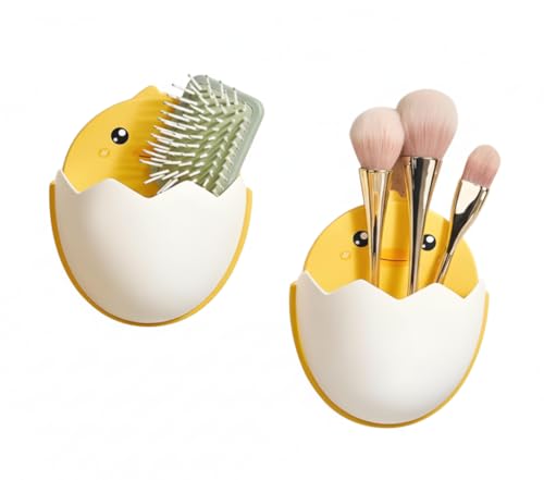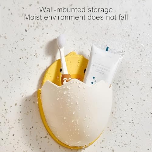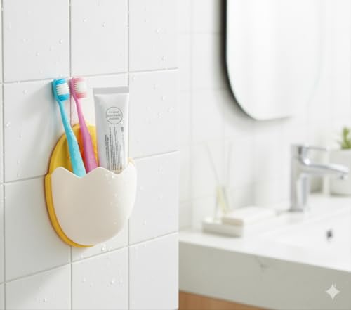 Generic - حامل فرشاة أسنان ومنظم أدوات الحمام والمكياج | تثبيت جداري قوي بلصق ذاتي بدون حفر | تصميم عملي وموفر للمساحة مع فتحات تهوية | لتنظيم معجون الأسنان، المشط، شفرات الحلاقة، ومستحضرات التجميل | أبيض وأصفر