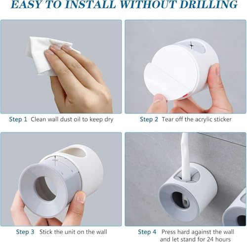 - تصميم يثبت على الحائط: حامل فرش الأسنان ذاتي اللصق يُثبّت بإحكام على جدران الحمام دون الحاجة إلى ثقب، مما يحمي الأسطح من التلف مع الحفاظ على فرش الأسنان منظمة وفي متناول اليد.