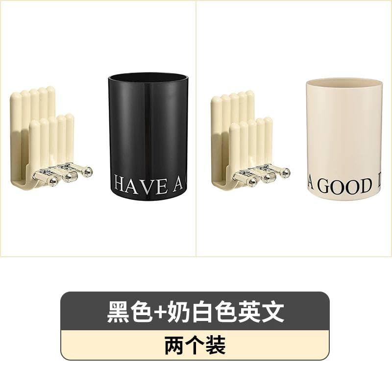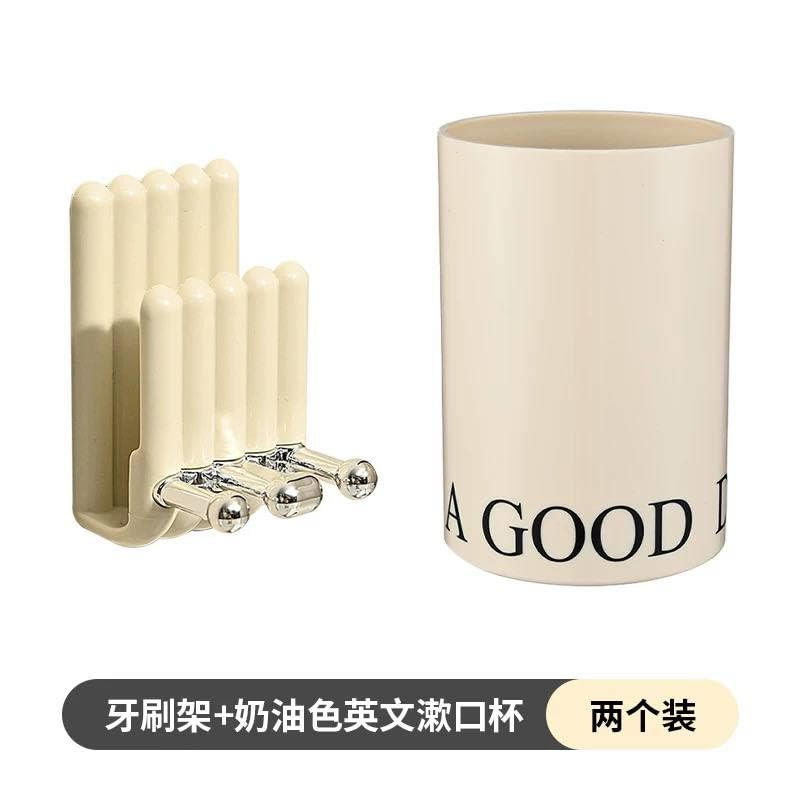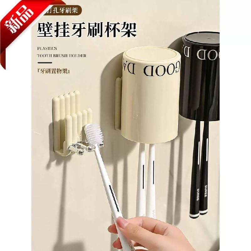 - حامل فرش أسنان مع كوب يساعد على تنظيم مستلزمات العناية اليومية بشكل مرتب وصحي حول حوض الحمام.