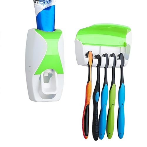 Generic - مجموعة موزع معجون أسنان اوتوماتيكي متعدد الألوان مع حامل فرشاة مضاد للغبار للترتيب والنظافة (مجموعة من 5 قطع) (مجموعة واحدة من اللون المعروض)