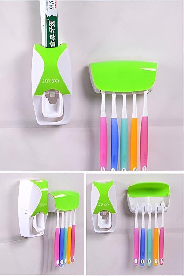 Generic - موزع معجون أسنان - نظام اوتوماتيك بدون لمس لسهولة التنظيف دون فوضى، مجموعة حمام متعددة الألوان من 5 قطع مع حامل فرشاة أسنان، تصميم مقاوم للغبار، بدون فوضى، حل تخزين مريح (طقم من 3 قطع)