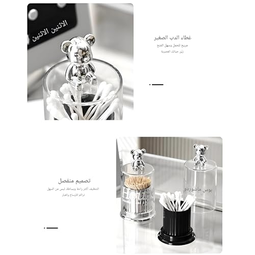 - تم تصميم قطعتين من منظمات أعواد الأسنان والأعواد القطنية بشكل جمالي واضح يسمح لها بالاندماج بسلاسة مع أي ديكور موجود، مما يضمن أن حمامك يحافظ على مظهره الأنيق والعصري.