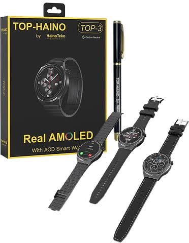 - تأتي الساعة مع ثلاثة أساور (فولاذ مقاوم للصدأ، جلد، سيليكون) لتناسب مختلف الأذواق والمناسبات.