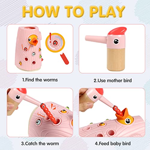- ألعاب مونتيسوري لعمر عامين: تحتوي لعبة الأطفال بعمر عامين على 8 ديدان وطائر وجذع شجرة. لعبة المغناطيس الرائعة هي أداة ممتعة وعملية يمكنك من خلالها مساعدة طفلك كثيرًا في تعلم الألوان والأرقام. لذلك يمكنك أن تقول، "الطائر جائع لدودة خضراء!" أو "يريد الطائر أن يأكل دودة زرقاء!" هذا سيجعله يفصل أي لون آخر التقطه أثناء التحدث للتأكد من أنه وجد دودة من اللون المناسب. طريقة لطيفة حقًا لممارسة الألوان