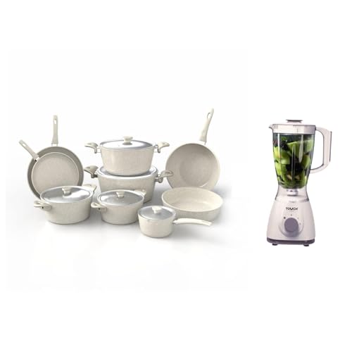 Top Chef - طقم أواني الطبخ من توب شيف، مصنوع من الجرانيت باللون البيج، غير لاصق وآمن في غسالة الأطباق ومتوافق مع الحث، يتكون من 14 قطعة