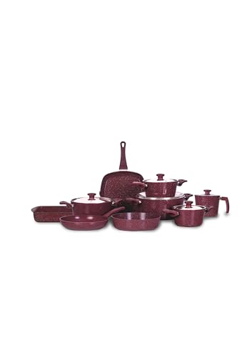 Top Chef - طقم أواني جرانيت من توب شيف مكون من 14 قطعة (حلة 18/20/24/28 سم، طاسة قلي 26 سم، صينية فرن 30 سم، طاسة شواء 28 سم - صينية مستطيل 30 سم - لبانة 16 سم) لون بورجندي