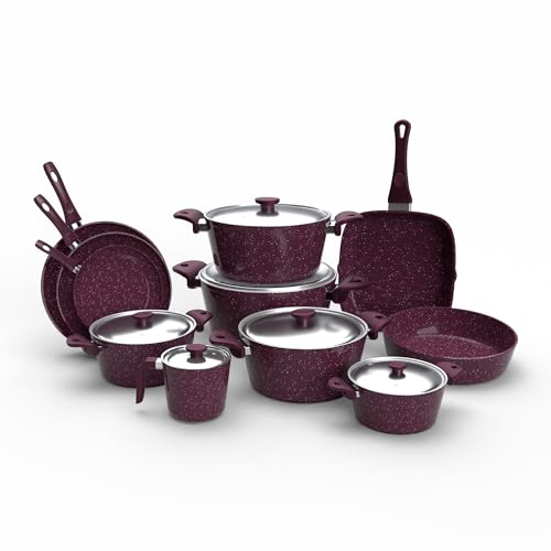 - تحتوي المجموعة على جميع أدوات الطبخ الأساسية المصنوعة من مادة الجرانيت المتينة.
