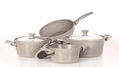 Top Chef - طقم أواني طهي جرانيت من توب شيف، 7 قطع - بيج، لا يلتصق