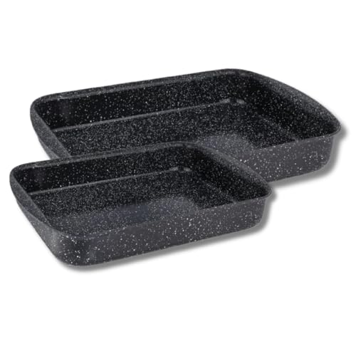 Top Chef - توب شيف طقم صواني جرانيت مستطيلة من قطعتين (مقاسات 25، 35) - أسود