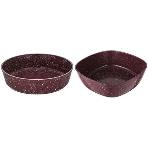Top Chef - صينية فرن جرانيت دائرية غير لاصقة مقاس 30 سم من توب شيف بلون بورغندي + طاسة مربعة - منتج صديق للبيئة - خبز، 26 -