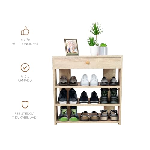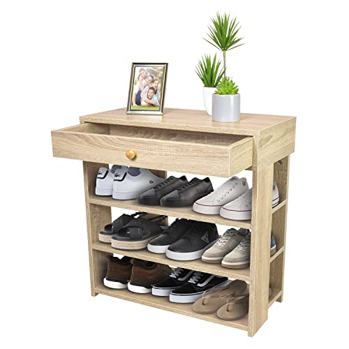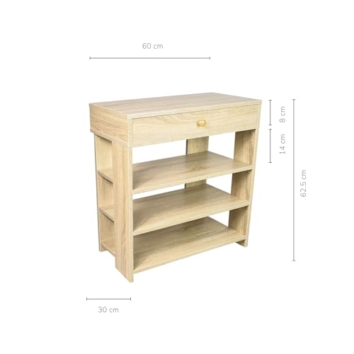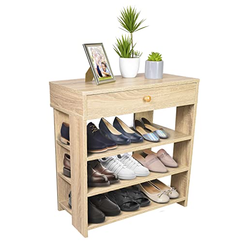 TOPLIVING - رف أحذية عصري يتسع لـ9 أزواج من الأحذية توب ليفينج دولاب خشب متين بثلاثة أرفف ودرج واحد لغرفة النوم والتنظيم والتخزين بيج