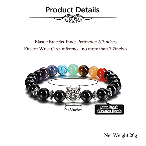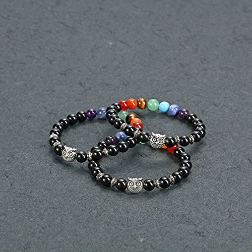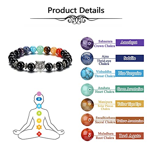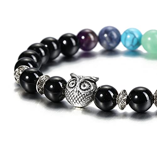 Top Plaza - سوار ريكي مرن بخرز احجار شاكرا 7 ودلاية بومة لليوجا والتامل والاستشفاء وعلاج القلق، مناسب كهدية للنساء والرجال من توب بلازا, حجر, غير معروف