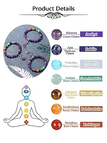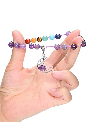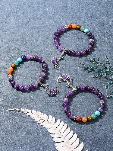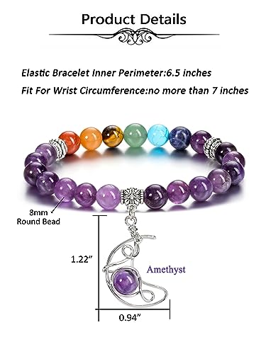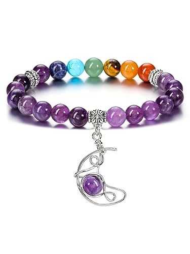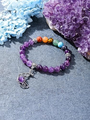 Top Plaza - توب بلازا سوار كريستال علاجي من حجر الجمشت 7 احجار شاكرا اساور خرز الاحجار الكريمة ريكي لليوجا ملتف بسلك على شكل قمر للنساء والرجال هدايا الكريسماس