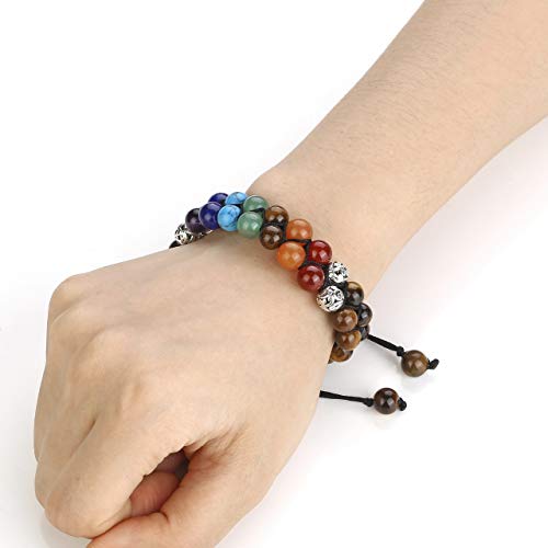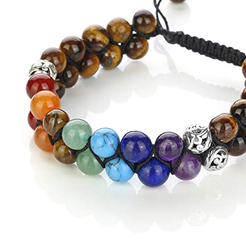 Top Plaza - سوار خرز شاكرا، 7 خرزات كريستالية شاكرا بفعالية للشفاء، سوار حلقي مناسب لليوجا والتامل والاسترخاء ويزيل القلق للرجال والنساء، من توب بلازا, 8 5 inch, حجر