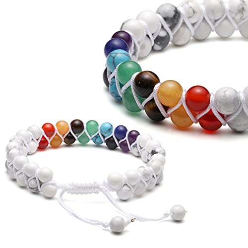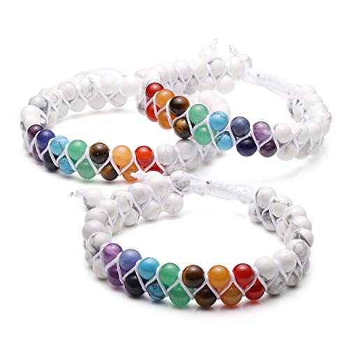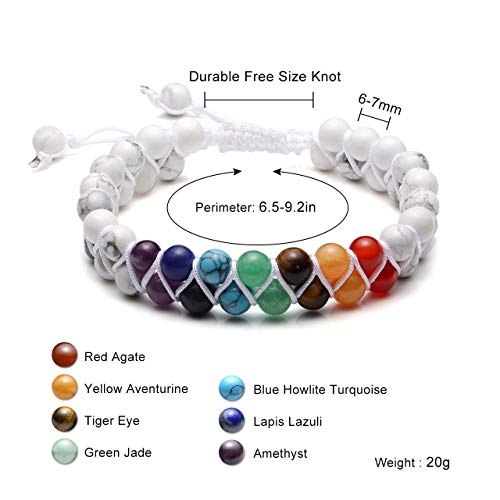 Top Plaza - سوار خرز شاكرا، 7 خرزات كريستالية شاكرا بفعالية للشفاء، سوار حلقي مناسب لليوجا والتامل والاسترخاء ويزيل القلق للرجال والنساء، من توب بلازا, كريستال