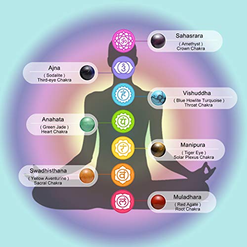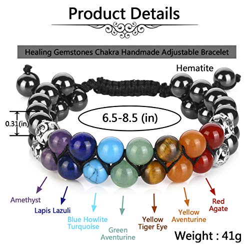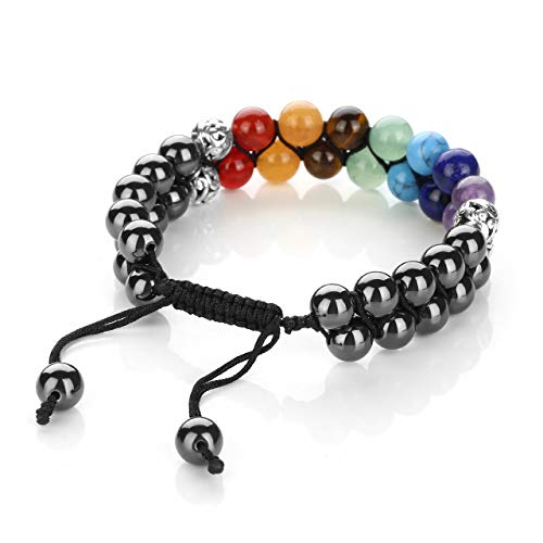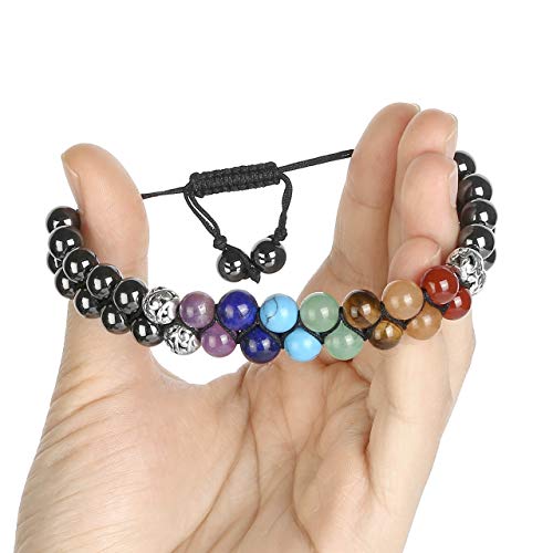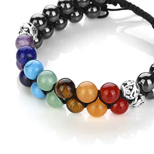 Top Plaza - سوار خرز شاكرا، 7 خرزات كريستالية شاكرا بفعالية للشفاء، سوار حلقي مناسب لليوجا والتامل والاسترخاء ويزيل القلق للرجال والنساء، من توب بلازا, حجر
