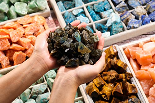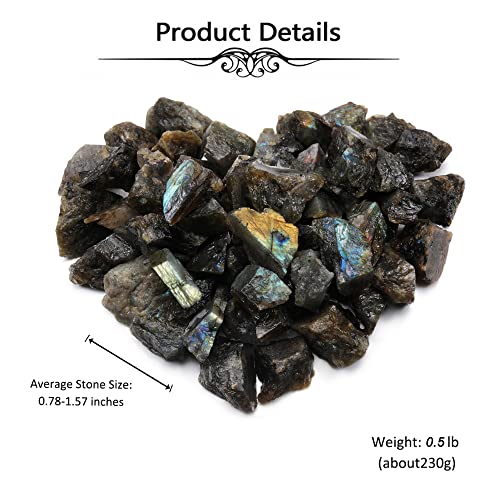 Top Plaza - احجار كريستال علاجية خام طبيعية كبيرة خشنة لابرادوريت من توب بلازا، مقاس 1 بوصة لعلاج الريكي والويكا والسحر والصقل وصناعة الاحجار الكريمة وكصخور نافورة ولزينة الديكور والتلميع بوزن 0.5 رطل